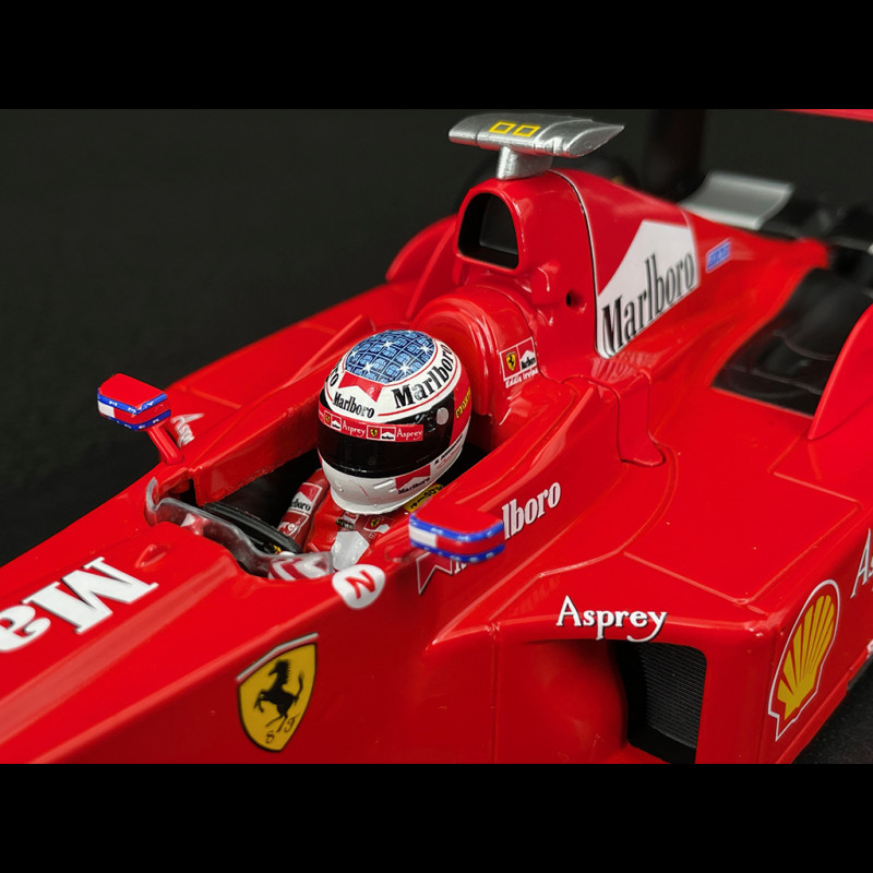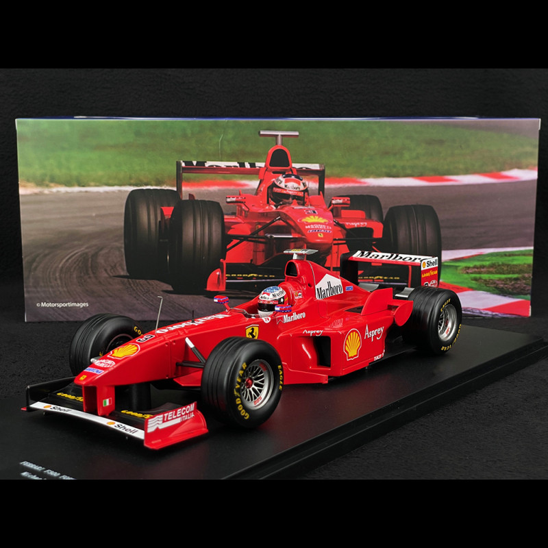 This version pays tribute to Schumacher's legendary victory at Monza, in front of a raucous Italian crowd. This triumph was one of the most symbolic of the season, in a fiercely contested championship against McLaren. This Ferrari F300, victorious at Monza in 1998, embodies Schumacher's determination, talent, and aura, as well as Ferrari's rise to prominence before the golden age of the early 2000s. A model steeped in history and emotion, essential for any Formula 1 enthusiast.