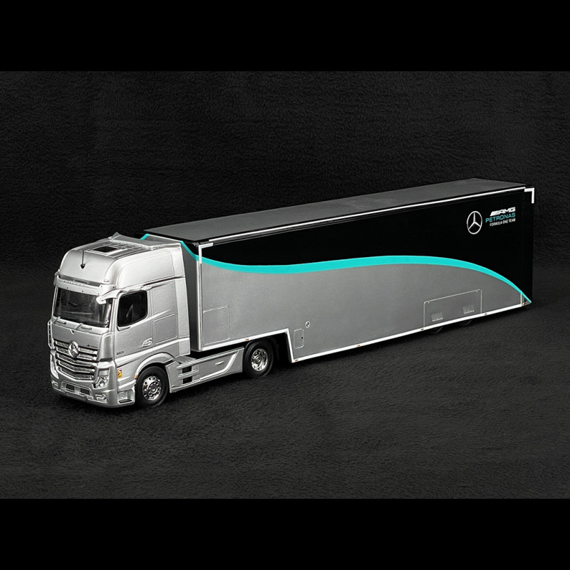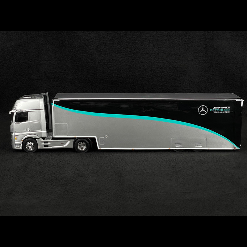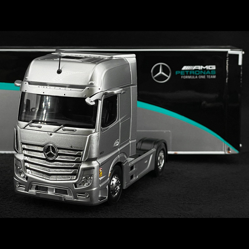 Its imposing silhouette and F1-inspired livery reflect the connection between road engineering and sporting performance. Every detail, from the powerful engine to the advanced safety and comfort systems, is designed to guarantee optimal and uncompromising transport for teams and their vehicles. The 2023 Mercedes-AMG Actros F1 thus embodies the power and technical excellence of Mercedes, offering a unique experience where performance, prestige, and functionality converge in an exceptional vehicle.