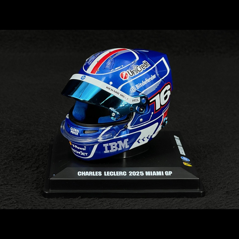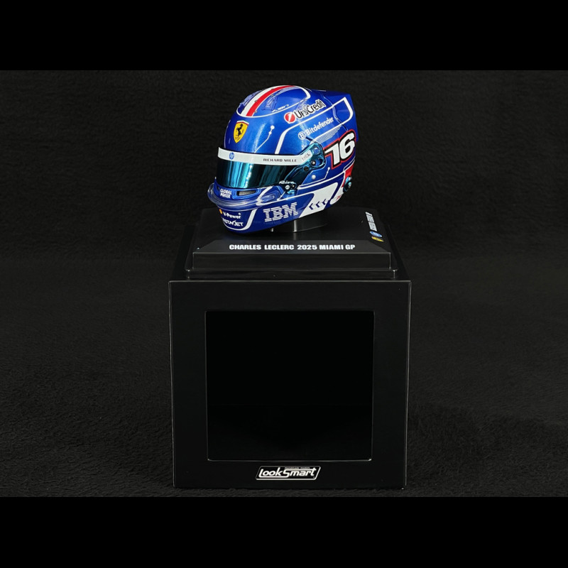 The LooksmartHelmet 1:5 Charles Leclerc – Ferrari F1 Miami 2025” miniature is a 1:5 scale reproduction of the helmet worn by Charles Leclerc during the 2025 Miami Formula 1 Grand Prix, produced by Looksmart for F1 memorabilia collectors.