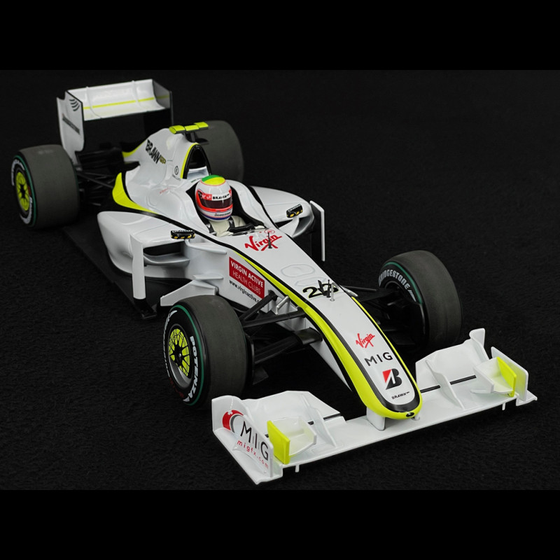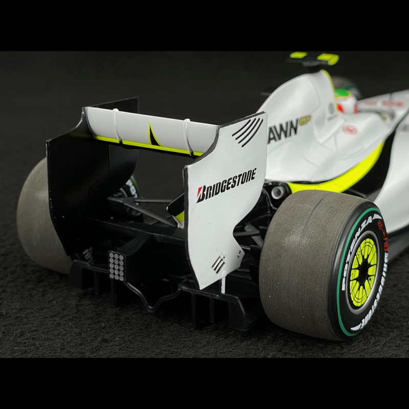 This car immortalises Rubens Barrichello's victory at the 2009 European Grand Prix, a highlight of Brawn GP's historic season.