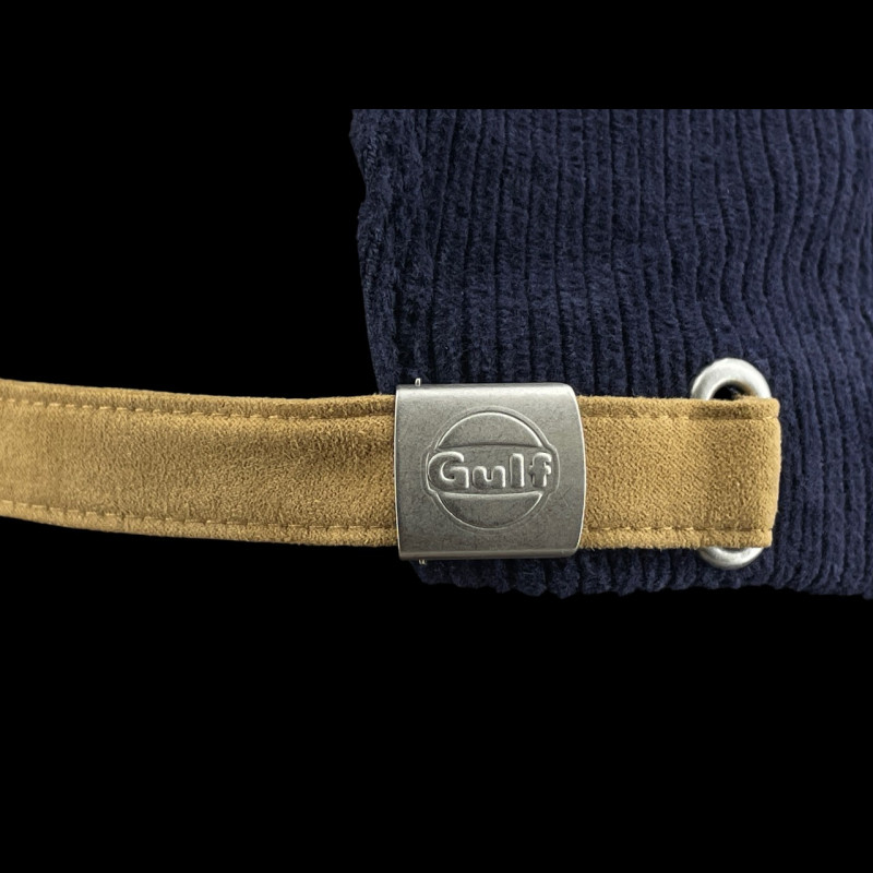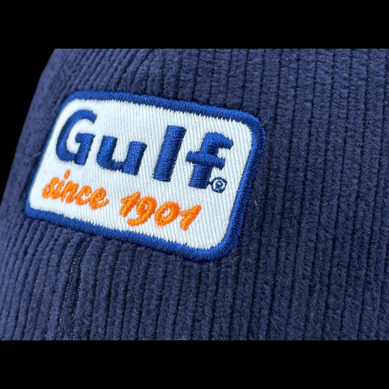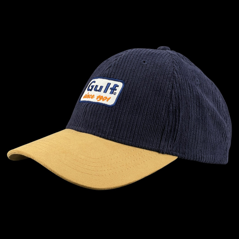 The Gulf Cap GU252KS615-100 blends retro vibes with racing heritage. Crafted in navy blue corduroy with a camel suede-style visor, it features a raised "Gulf since 1901" embroidered patch on the front – a tribute to the brand’s rich history.