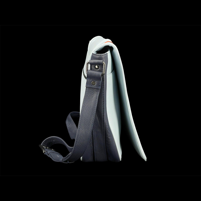 Gulf Shoulder Bag Racing in Leather Silvertsone Light Blue GU252ACM02-125