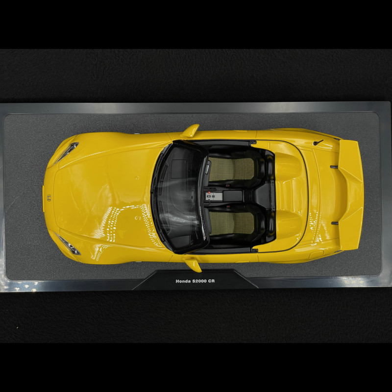 This 1/18 scale Honda S2000 CR New Indy 2007 by Ottomobile is a resin miniature, without opening parts, that reproduces the Club Racer version in its iconic yellow paint with a hardtop, specific aerodynamic kit, and dark wheels. The model highlights the CR's unique details (rear wing, front splitter, aggressive stance), making it an ideal piece for a display case dedicated to Japanese sports cars, naturally aspirated Honda VTECs, and track-focused limited editions.