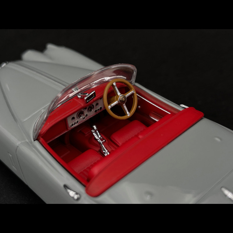 The 1958 Jaguar XK150 Roadster is a classic British convertible, embodying the elegance and refinement of the 1950s while offering a sporty and sophisticated driving experience. Its Light Grey paintwork highlights its flowing lines, chrome grille, and timeless design, typical of the era's prestigious roadsters.