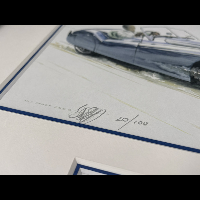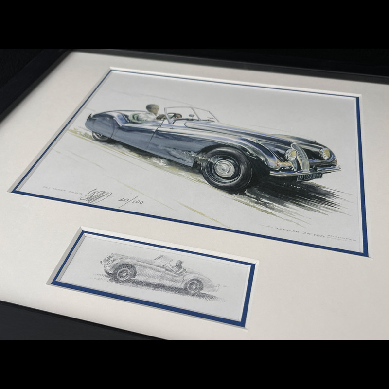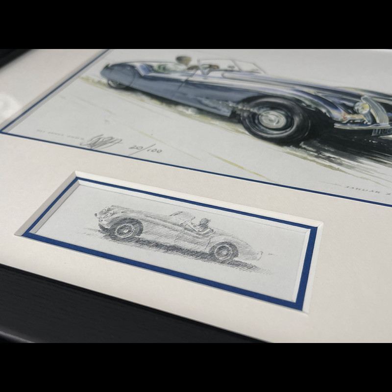 Jaguar Frame XK 120 Roadster 1948 Black Wooden Frame with Sketch 25 x 30 cm - Uli Ehret