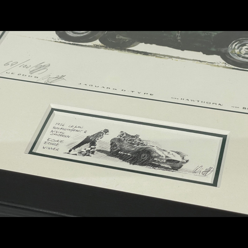 Jaguar Frame D-Type n° 6 Vainqueur 24h Le Mans 1955 Black Wooden Frame with Sketch 25 x 30 cm - Uli Ehret