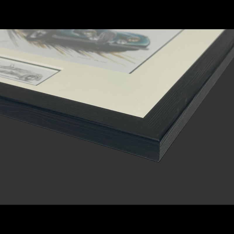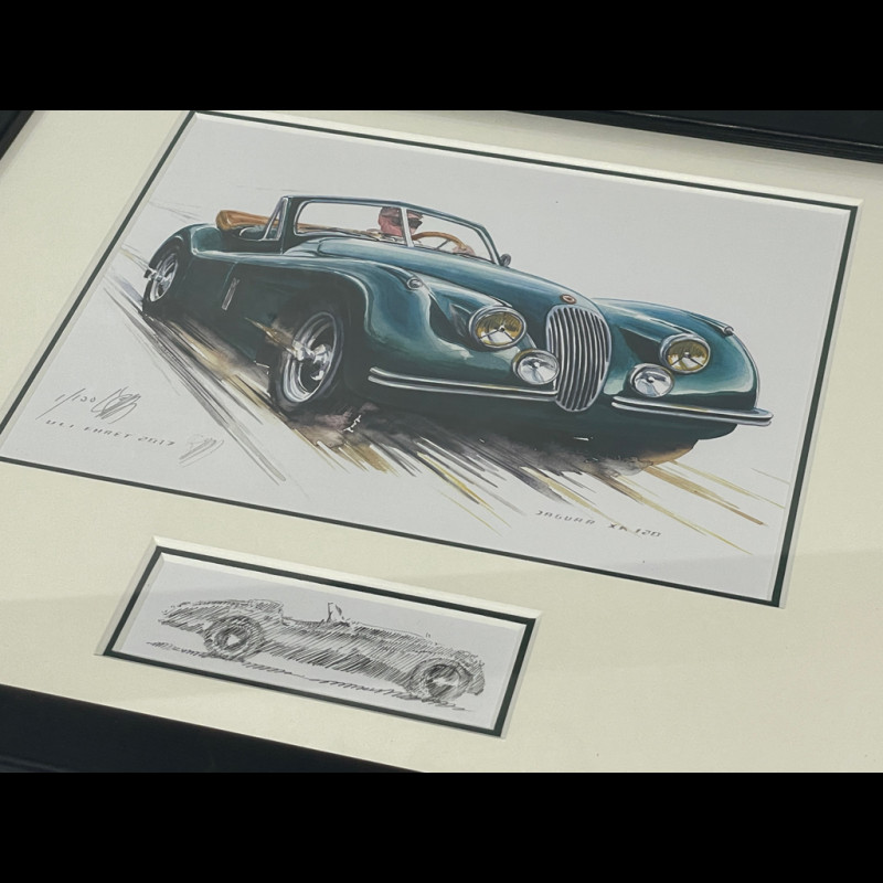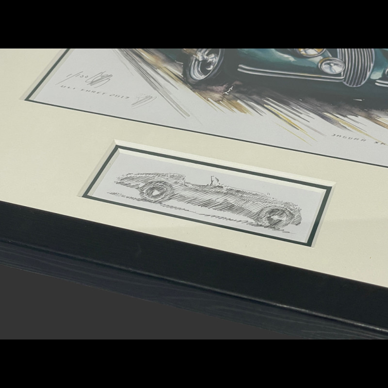 Jaguar Frame XK 120 1948 Black Wooden Frame with Sketch 25 x 30 cm - Uli Ehret
