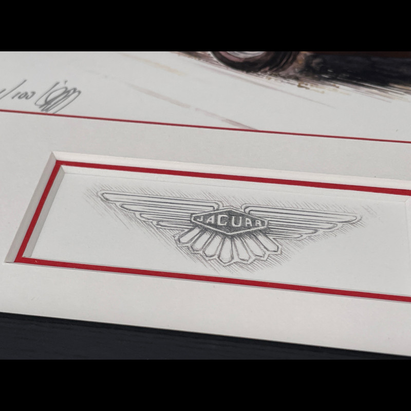 Jaguar Frame E-Type Series 1 1962 Black Wooden Frame with Sketch 25 x 30 cm - Uli Ehret