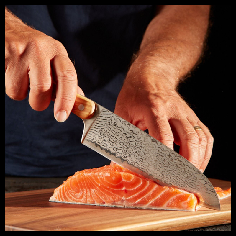 With its formidable cutting edge, it excels at cutting meat, fish and vegetables thanks to its wide, slightly curved blade, perfect for slicing, chopping or mincing with ease