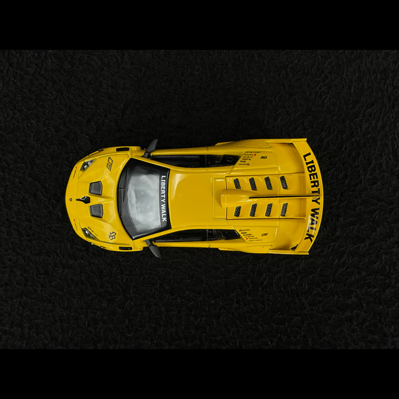 True to its reputation, Mini GT delivers a 1/64-scale metal replica of remarkable precision, enhanced by a striking yellow finish that highlights every edge of the body kit. Under the reference MGT01135-L, this model impresses with the elegance of its ‘swan neck’ spoiler and its offset wheels, perfectly capturing Liberty Walk’s spectacular DNA.