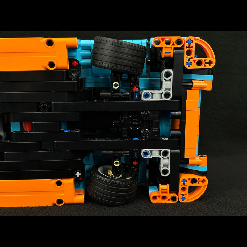 Comprising 784 Technic-type bricks, the model offers a rich and stable build.