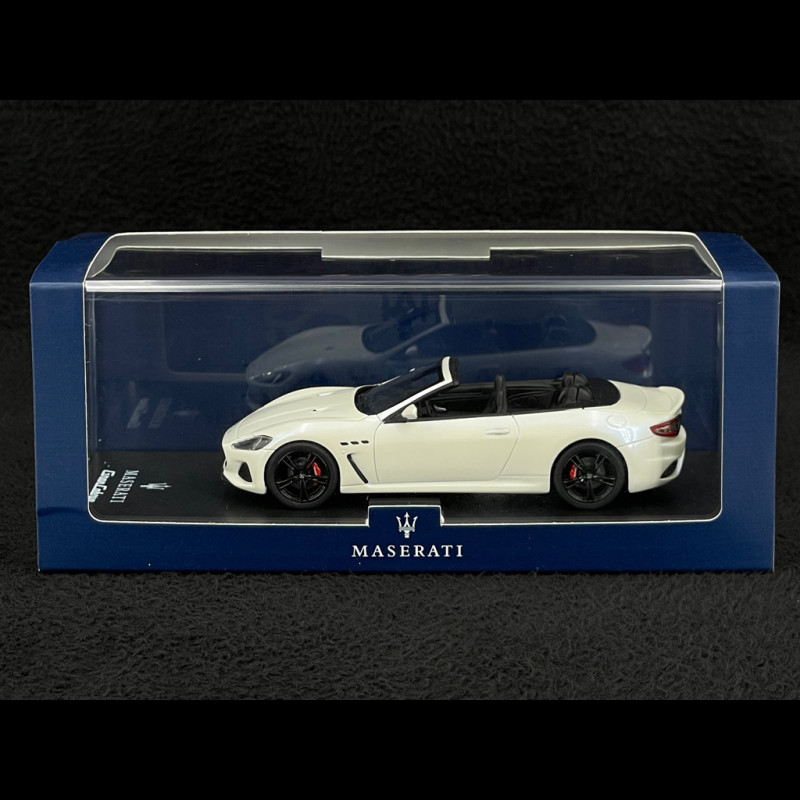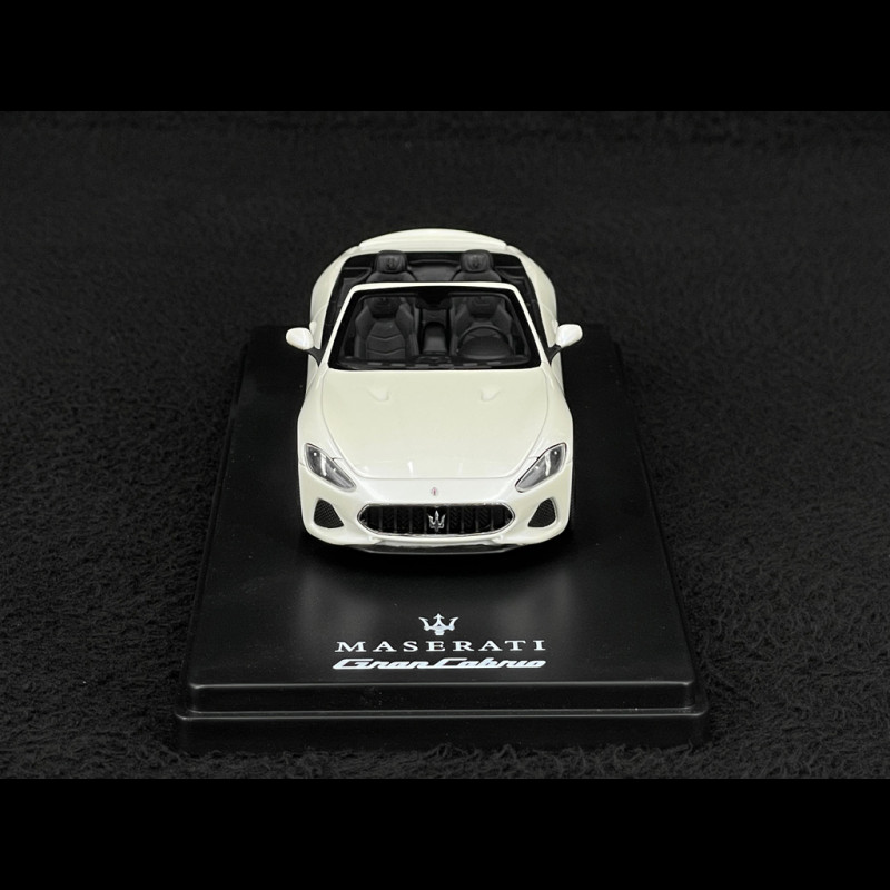 The 1/43 scale GranCabrio in white is a limited edition that faithfully reproduces the unique lines of the Maserati convertible: long hood, taut beltline, and elegant rear end with the soft top down. The white finish highlights the body's curves, while the Trident grille, headlights, alloy wheels, and light signatures are finely detailed and pad-printed. Made of resin and meticulously assembled, the model is presented on a collector's base, ready to be displayed in a showcase dedicated to Italian GTs and convertibles.