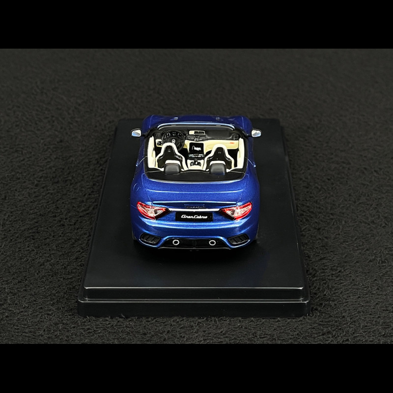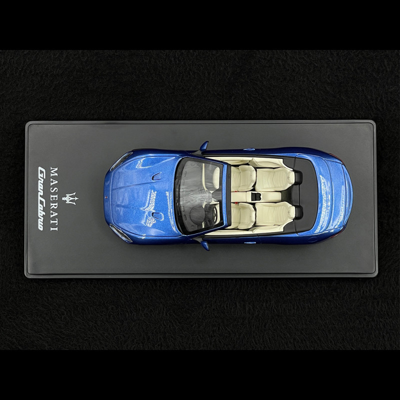 The 1/43 scale GranCabrio in blue is a limited edition that faithfully reproduces the unique lines of the Maserati convertible: long hood, taut beltline, and elegant rear end with the soft top down. The blue finish highlights the body's curves, while the Trident grille, headlights, alloy wheels, and light signatures are finely detailed and pad-printed. Made of resin and meticulously assembled, the model is presented on a collector's base, ready to be displayed in a showcase dedicated to Italian GTs and convertibles.