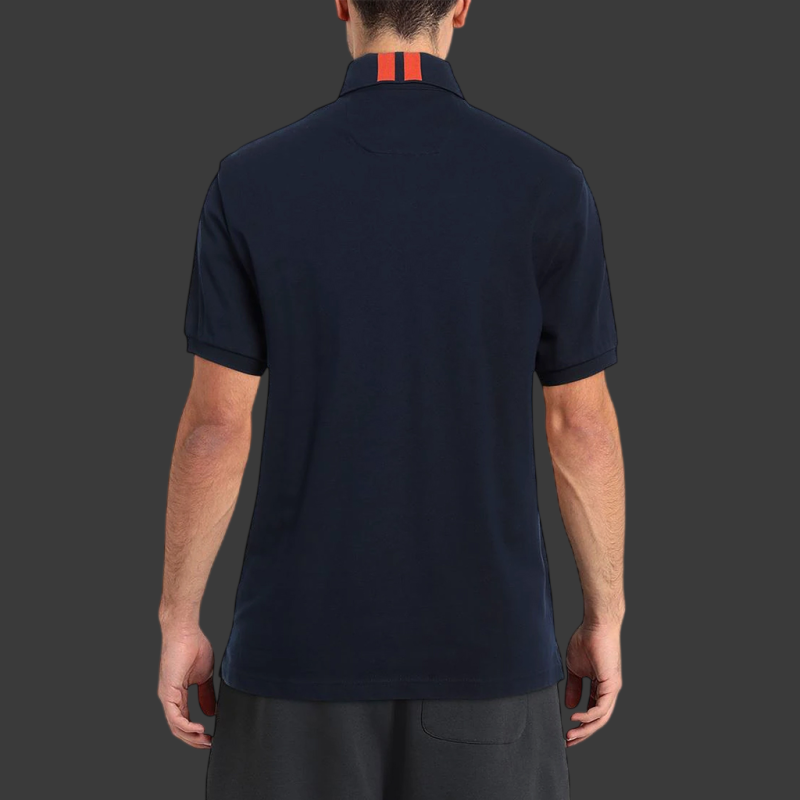 This polo shirt features a deep navy blue that serves as a very understated backdrop, perfect for showcasing the details inspired by the Maserati and North Sails nautical worlds. Against this solid background, the chest logos and buttons stand out subtly, giving it a sporty-chic look rather than a purely casual one.
