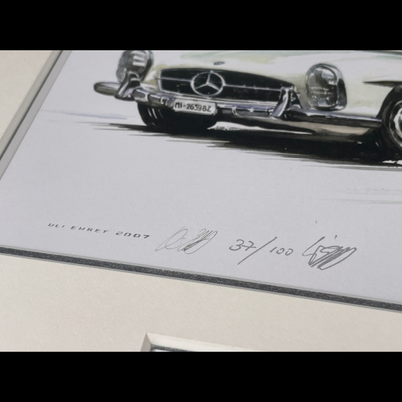 Mercedes-Benz Frame 300 SL Roadster 1957 Black Wooden Frame with Sketch 25 x 30 cm - Uli Ehret
