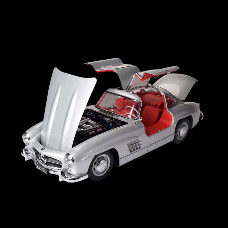 Perceived as the first ‘supercar’, the Mercedes 300 SL is the brand's iconic model. With its distinctive, eye-catching design and spectacular gullwing doors, but also thanks to a number of technical innovations and an extraordinary engine, it has upset even the most ardent enthusiasts. To all enthusiasts, give life to a unique and finely detailed collector's model, identical to the original!