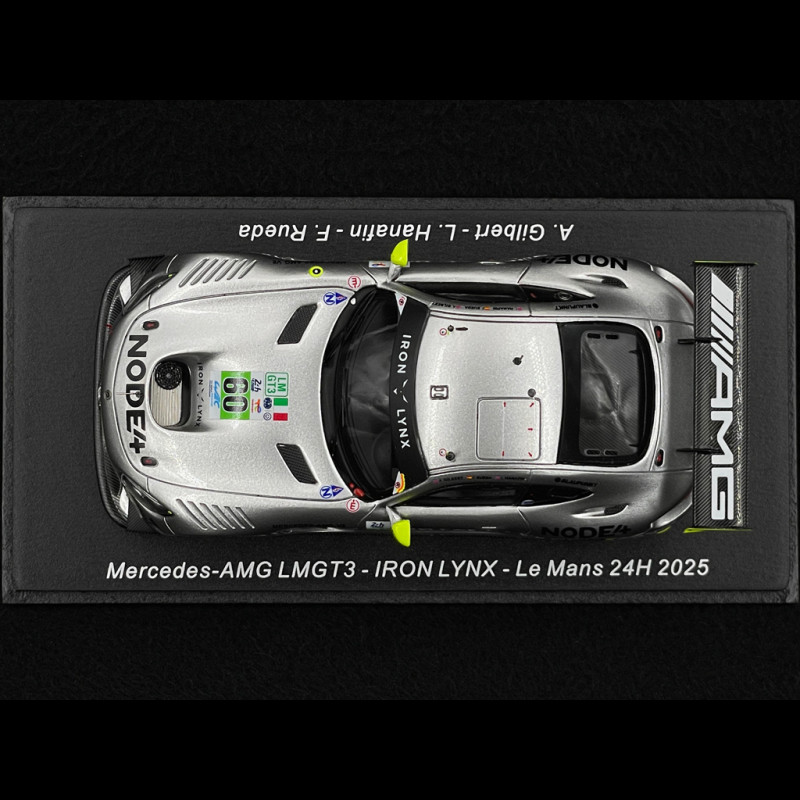 The 1:43 scale Mercedes-AMG GT3 Evo #60 – 24 Hours of Le Mans 2025 Iron Lynx model, produced by Spark Models (ref. S9296), is a faithful reproduction of the GT3 entered by the Iron Lynx team in the 2025 edition of the famous endurance race. This racing car, driven by Andrew Gilbert, Lorcan Hanafin, and Fran Rueda, sports the team's official livery and markings in the LMGT3 category.