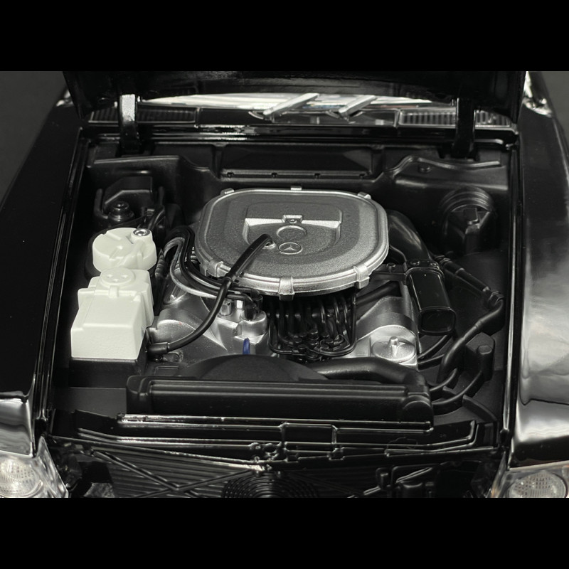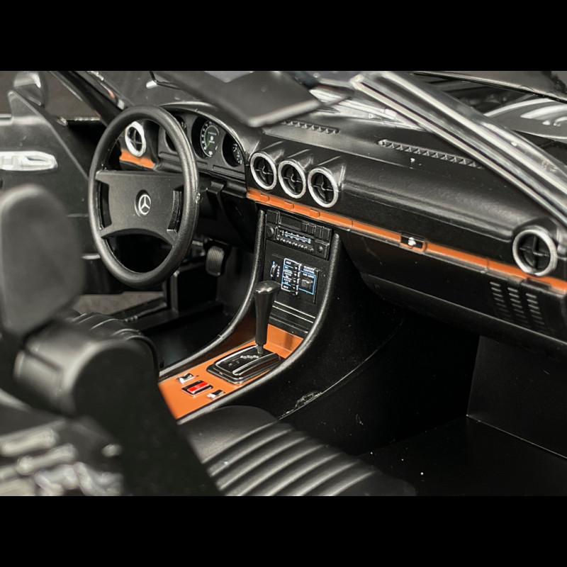 The 1985 Mercedes-Benz 450 SL R107, reproduced by KK Scale in 1/12 scale, faithfully recreates the elegance and presence of the legendary German roadster. This high-end miniature stands out with its functional doors and removable roof, allowing you to appreciate the meticulous details of the interior and bodywork. It pays tribute to an iconic model, a symbol of Mercedes luxury, comfort and reliability in the 1980s. This Mercedes-Benz 450 SL combines the iconic style of the German roadster with American features such as an oversized bumper and equipment adapted to US standards.