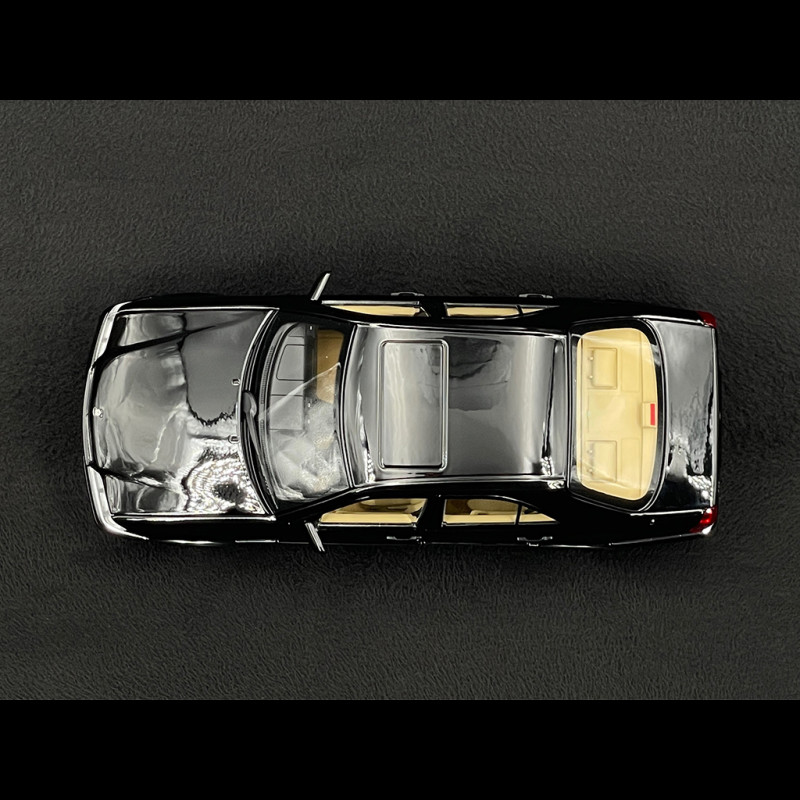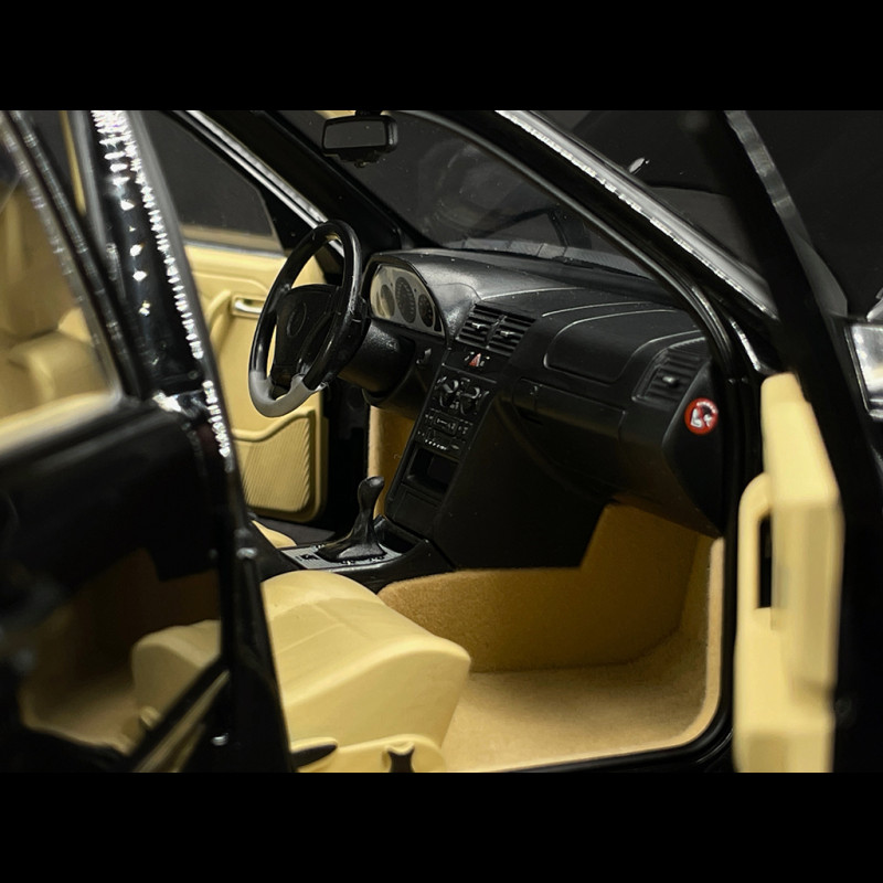 This 1:18 scale miniature perfectly captures the 1993 Mercedes-Benz C36 AMG in its deep Obsidian Black Metallic finish. The functional doors reveal a finely detailed interior, with the dashboard, seats and controls reproduced with precision. The bodywork features realistic finishes, from the rims to the headlights and specific AMG elements, reflecting the sporty and elegant character of this 1990s classic. A high-quality collector's item that combines realism, historical accuracy and meticulous finishing.