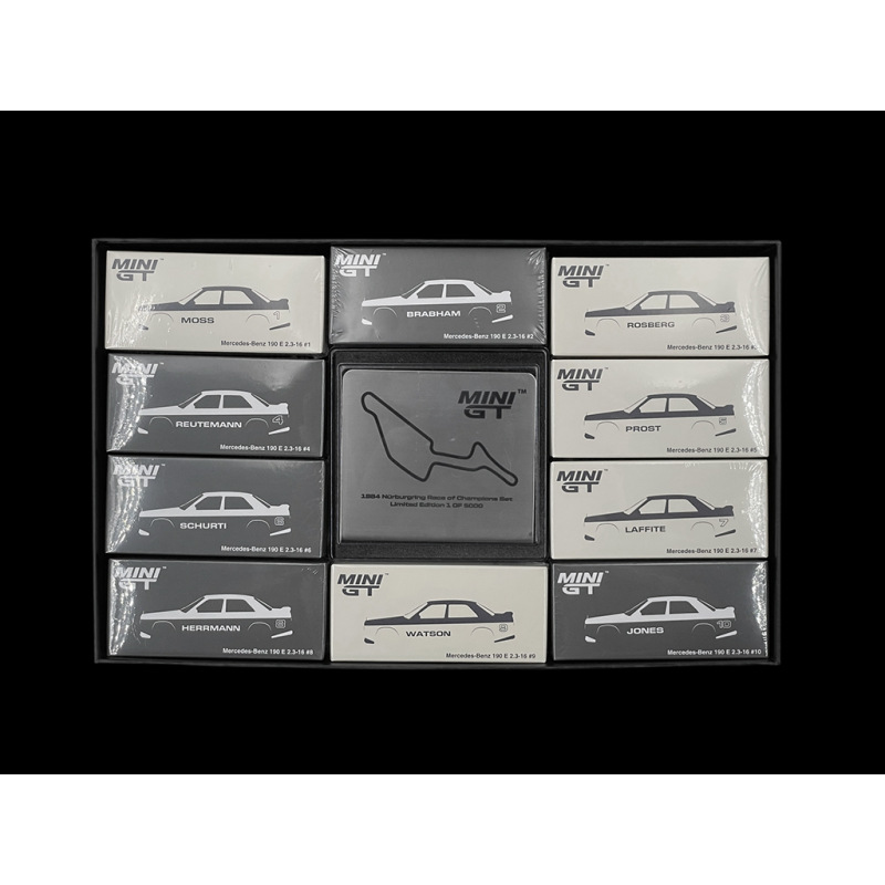Set of 20 Mercedes-Benz 190E Evo1 Nürburgring Race of Champions 1984 1/64 Mini GT MGTS0016