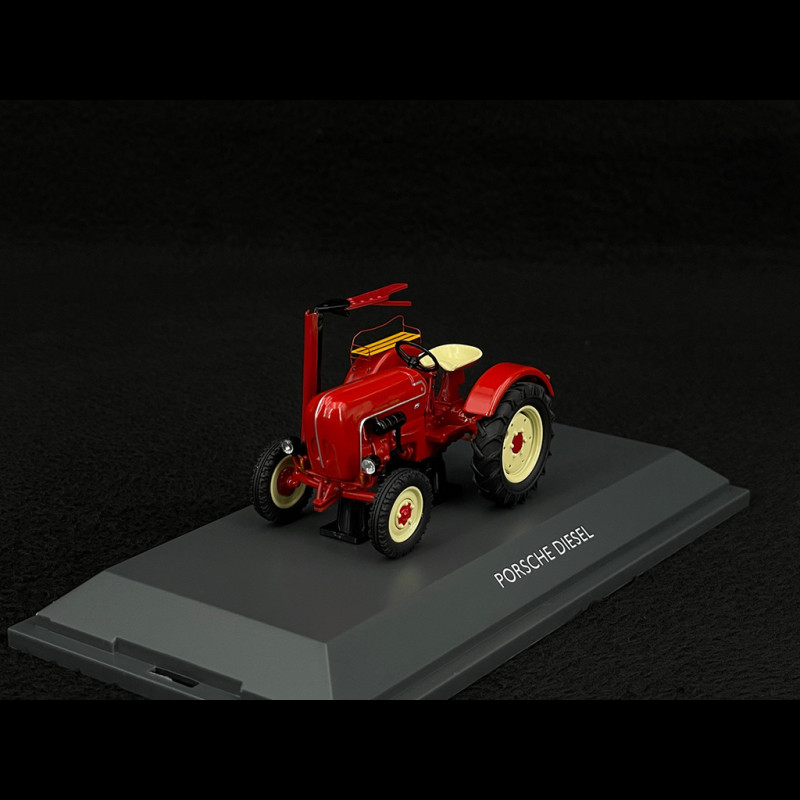 The Porsche Junior with Red Mower is a tribute to Porsche's mechanical expertise and precision engineering applied to the agricultural and domestic world. Compact, robust, and maneuverable, this little red tractor stands out for its versatility, capable of efficiently plowing, pulling, or mowing.