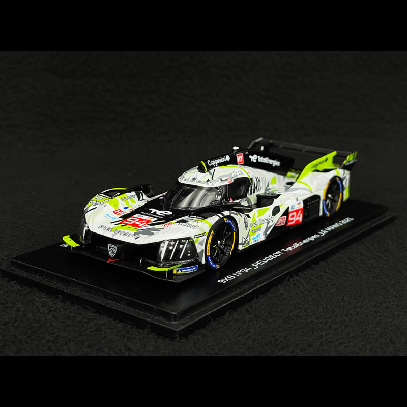 The 1/43 scale Peugeot 9X8 #94 model, produced by Spark, faithfully reproduces the Peugeot Hypercar prototype that will compete in the 2025 24 Hours of Le Mans, one of the world's most prestigious endurance races. This model showcases the futuristic silhouette and distinctive aerodynamic lines of the 9X8, complete with the official livery, numbers, and markings that reflect the team's visual identity on the legendary Circuit de la Sarthe.