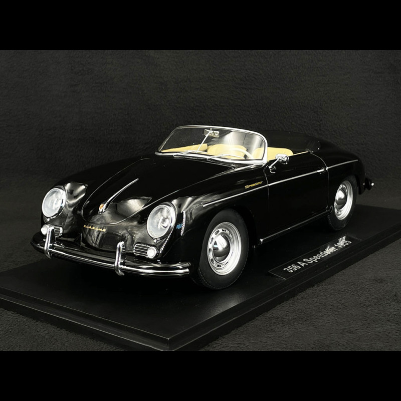 The KK Scale 1/12 scale Porsche 356 A Speedster 1955 Black is a premium reproduction of the iconic 1950s Porsche roadster. This model faithfully captures the elegant lines and sporty spirit of the original 1955 Speedster, one of the most sought-after classic Porsches among enthusiasts and collectors. Designed with meticulous attention to detail, the model features a beautifully detailed, authentic interior and steerable front wheels, enhancing its realism at this scale. Crafted from high-quality metal, this miniature reflects the flowing silhouette and stylistic features of the period-correct Porsche 356 A, while also offering an impressive visual presence.