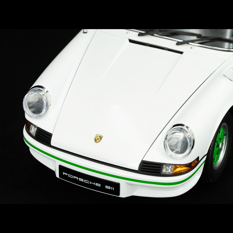 ASSEMBLED Kit Porsche 911 Carrera RS 2.7 1973 Grand-Prix White / Green stripes with Headlights and Engine Sound 1/8 Ixo Models