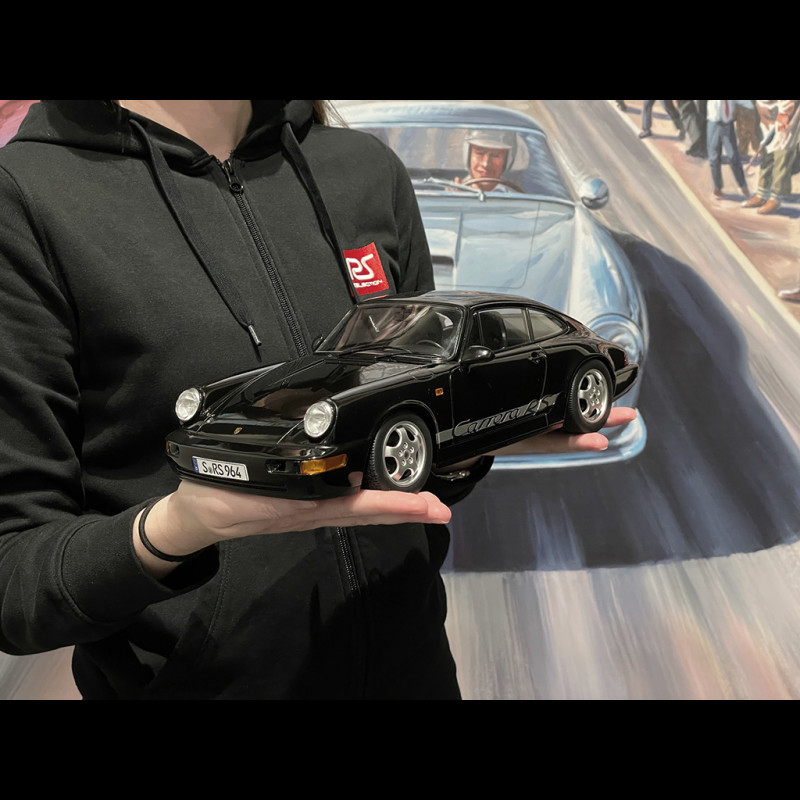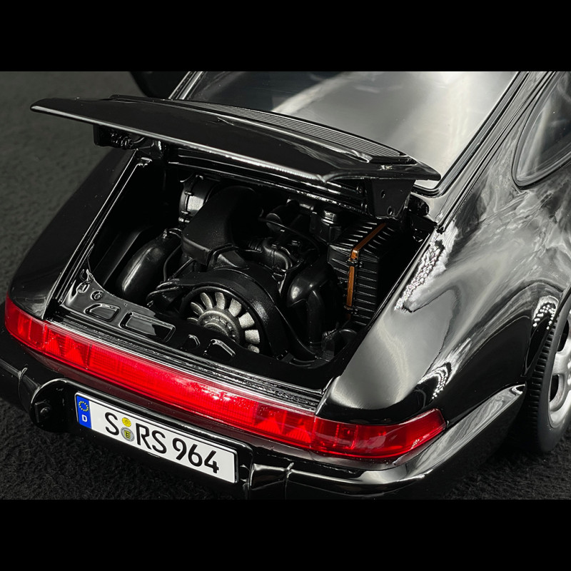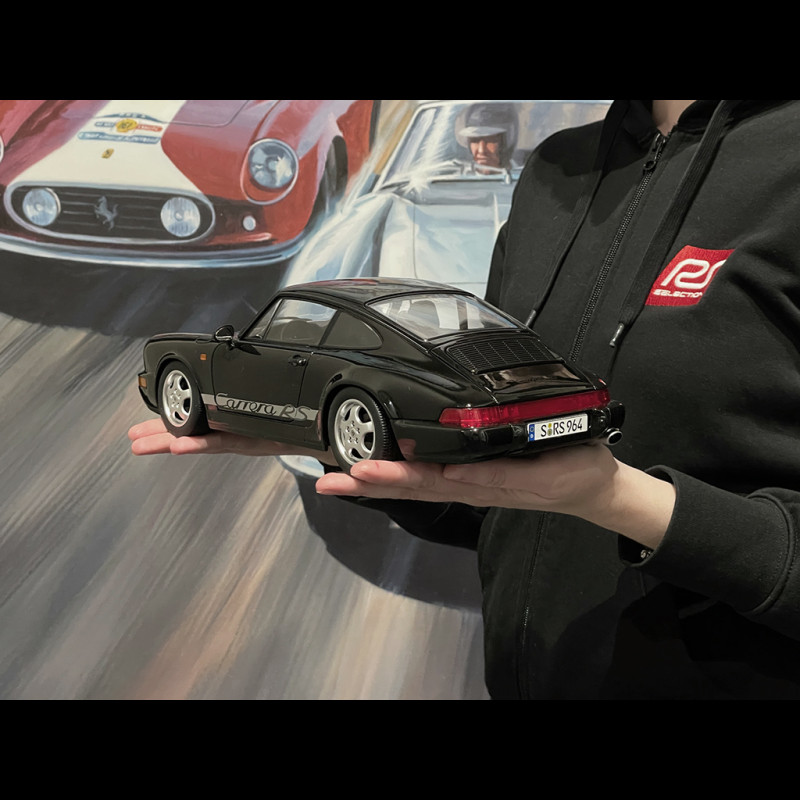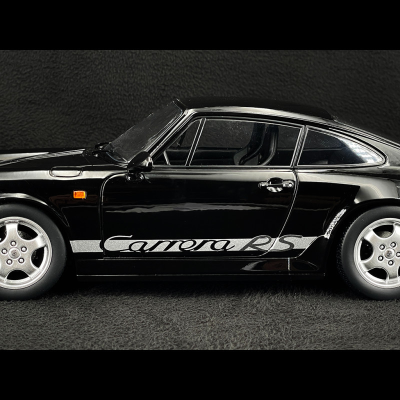 This 1/12 scale replica highlights the clean lines of the 964 RS in a black livery, perfectly complemented by the iconic Cup wheels of this generation. Made of metal on a large scale, the model makes a striking display case, with bodywork, interior, and running gear details that perfectly capture the radical spirit of the real RS.