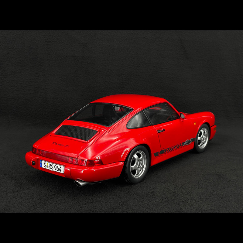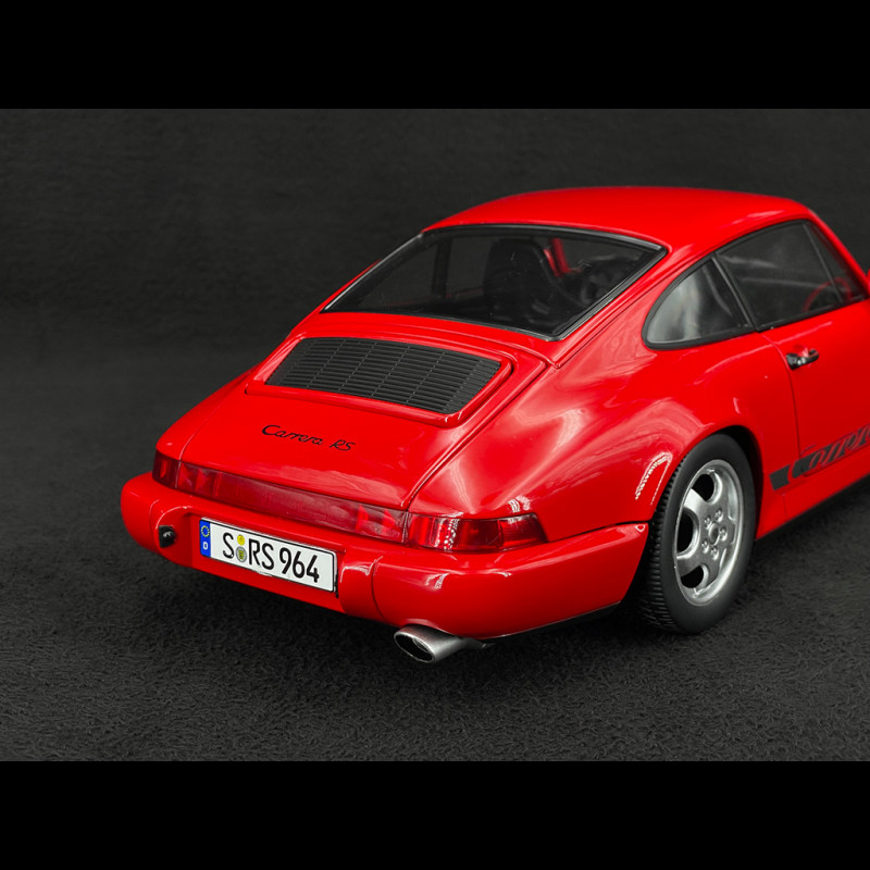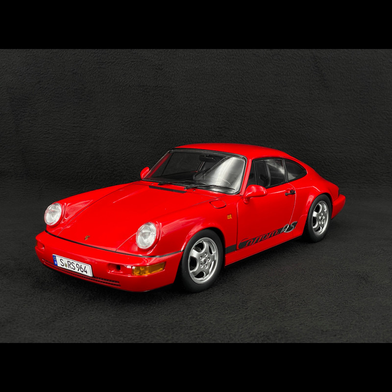 This 1/12 scale replica highlights the clean lines of the 964 RS in a red livery, perfectly complemented by the iconic Cup wheels of this generation. Made of metal on a large scale, the model makes a striking display case, with bodywork, interior, and running gear details that perfectly capture the radical spirit of the real RS.