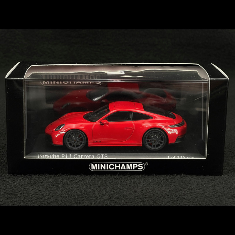 This 1/43 scale Minichamps miniature accurately reproduces the Porsche 911 Carrera GTS type 992.2 in Indian Red. The quality of manufacture is reflected in the meticulous finish, faithful proportions and attention to detail visible on the bodywork, lights and rims. In line with Minichamps' renowned standards, this model offers a realistic and elegant finish.