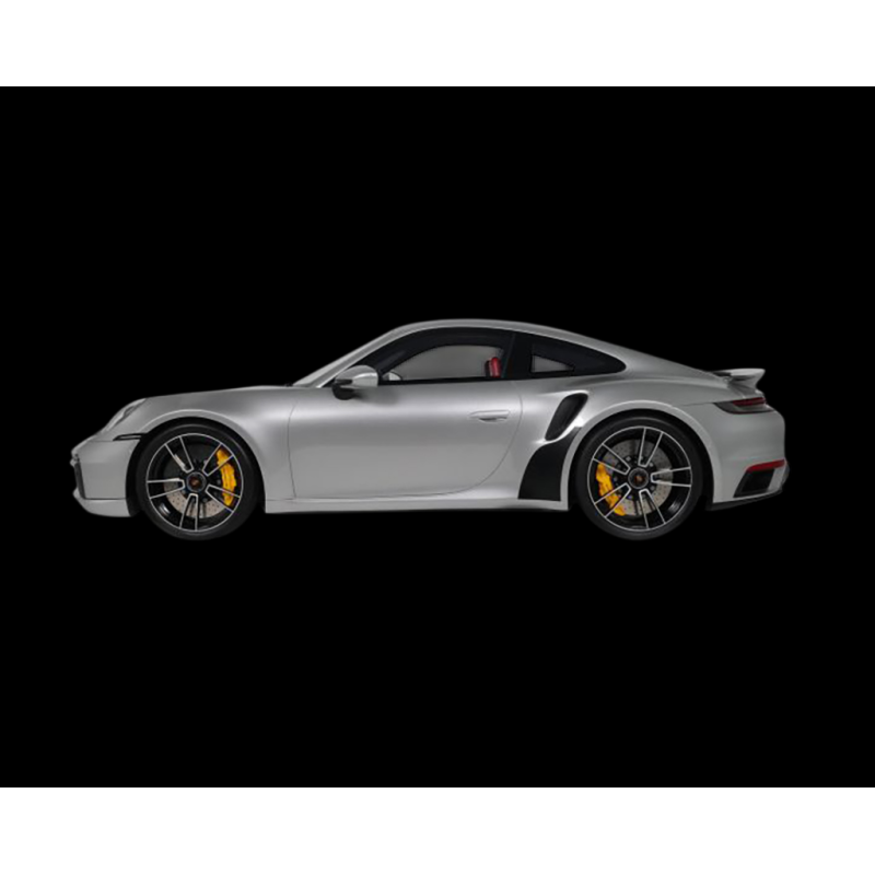 This 1/8 scale Porsche 911 Turbo S (992.1) in Silver Metallic by GT Spirit is clearly aimed at collectors seeking a striking, rare, and spectacular piece. Made of resin, it boasts excellent precision in its lines: fender flares, side air intakes, bumpers, spoiler, and rear diffuser faithfully reproduce the aggressive design of the Turbo S. At this XXL scale, the metallic silver paint takes on a new dimension, with reflections that highlight every detail of the bodywork.