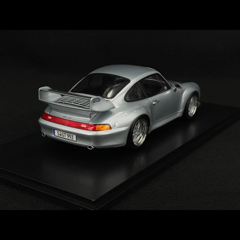 The Porsche 911 GT2 Type 993 Polar Silver is the embodiment of pure performance and legendary Porsche design. Equipped with Speedline wheels and a supercharged flat-six engine, it combines agility, power and aggressive styling, setting the hearts of sports car enthusiasts racing. Every line of its bodywork reflects the excellence and legendary heritage of the 993 series.