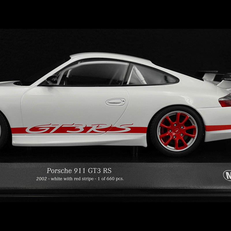 Porsche 911 GT3 RS Type 996 2002 White / Red Stripes 1/18 Minichamps 155062020