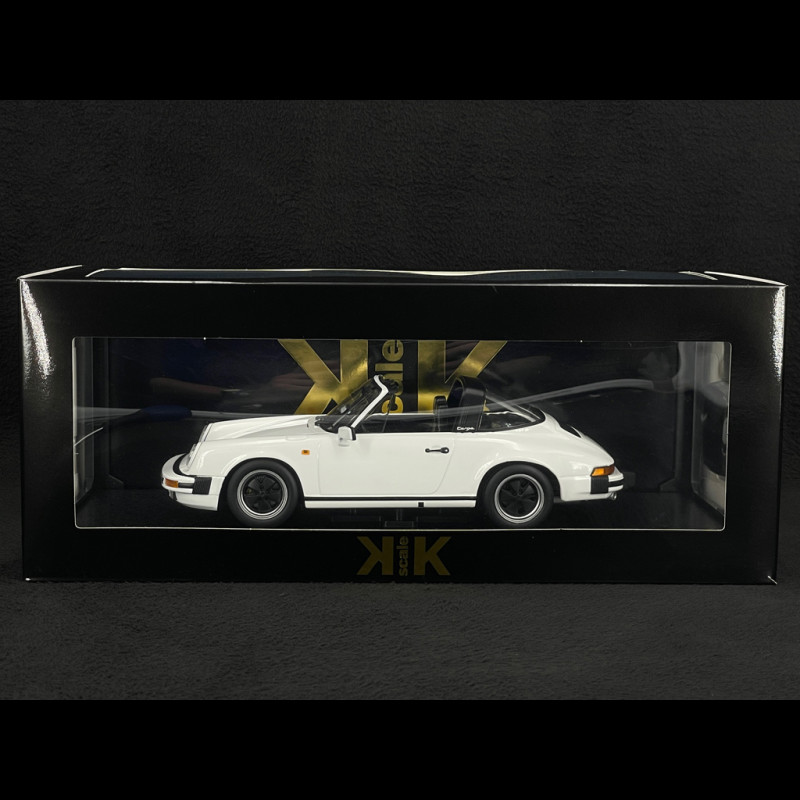 The KK Scale 1/18 miniature (ref KKDC180844) perfectly recreates this icon: bright white paintwork, meticulously detailed interior and faithfully reproduced removable Targa roof. A must-have collector's item for enthusiasts and model car lovers.