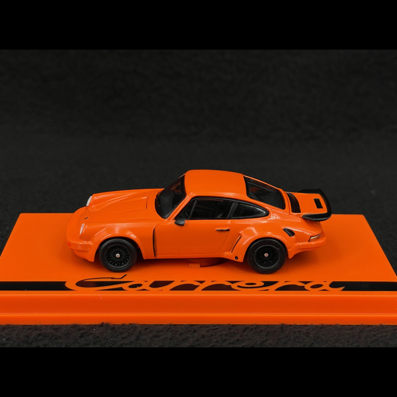 This 1/64 scale Spark miniature faithfully reproduces the orange continental/black combination typical of Porsche sports liveries of the 1970s with contrasting Carrera markings. Made of resin, the model focuses on precision of form, fine details and paint quality. An ideal piece to complete a collection dedicated to the iconic 911 RS.
