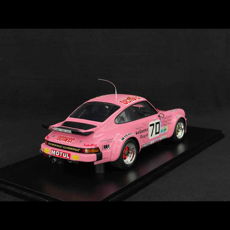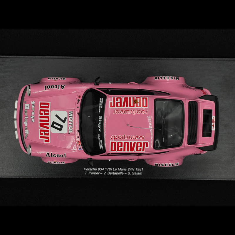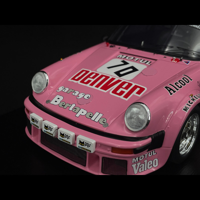 This 1/18 scale resin replica pays tribute to the Porsche 934 Turbo No. 70, winner of its class at the 1981 24 Hours of Le Mans, driven by Valentin Bertapelle, Thierry Perrier and Bernard Salam. The period livery and markings are faithfully reproduced, reflecting the authentic style of this Porsche racing car. The details of the bodywork, rims, lights and aerodynamic elements are finely executed, offering remarkable realism. Delivered with its display case, this collector's item combines historical accuracy, quality finish and prestige, ideal for enthusiasts of endurance racing and classic Porsches.
