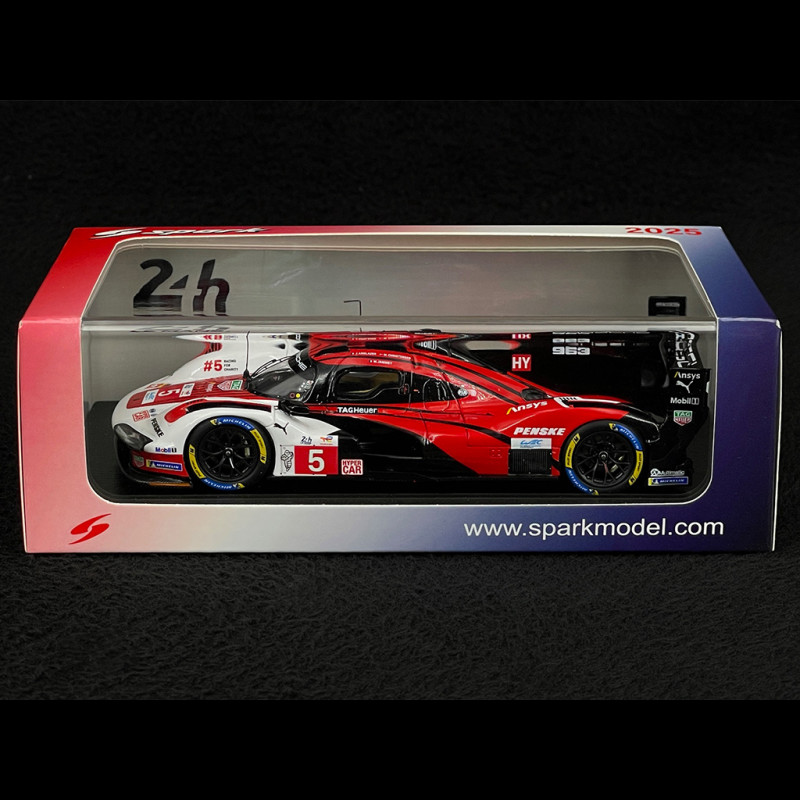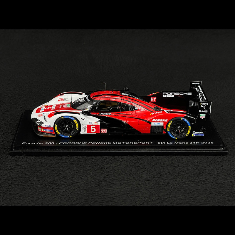 The 1/43 scale Porsche 963 No. 5 model, produced by Spark, faithfully reproduces the Hypercar entered by Porsche Penske Motorsport in the 2025 24 Hours of Le Mans, where it finished 6th in the pinnacle of endurance racing.