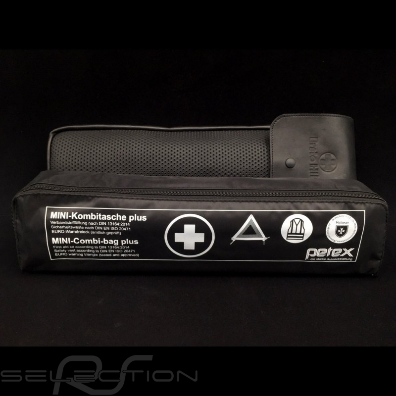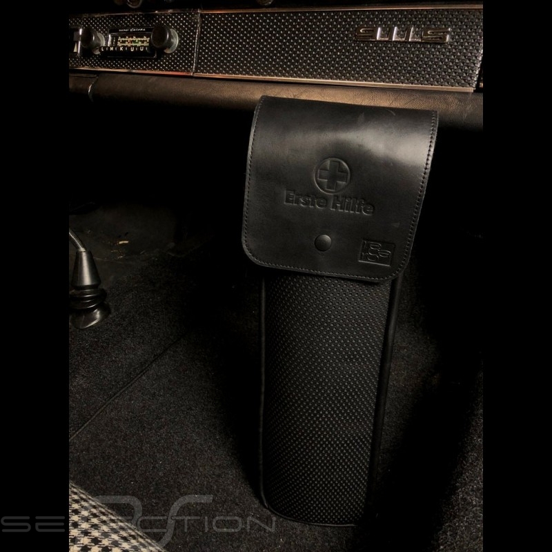 Original Porsche dashboard vinyl fabric / Black Recaro leather bag with flap - first aid kit included