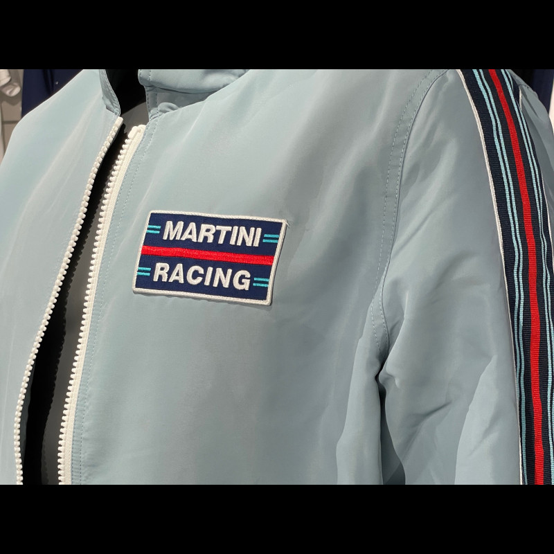 Jacket in classic Martini Racing Team colours, as worn by drivers and staff members during the 1975 season.