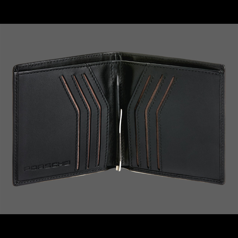 Combining refinement and functionality, this genuine leather card holder embodies the Porsche spirit down to the smallest detail. Compact and sophisticated, it offers eight RFID-protected card slots and an integrated money clip for quick and organized access.