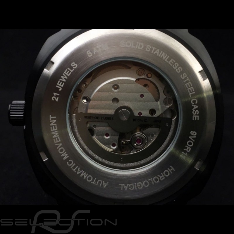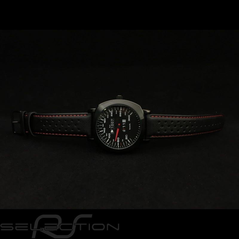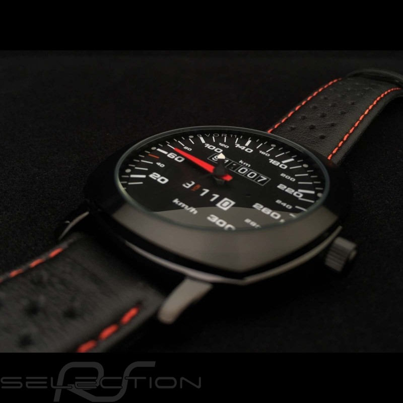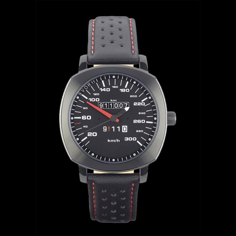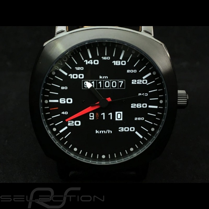 Inspired by the iconic speedometer of the Porsche 911 type 993 (1994–1998), this watch features the same iconic design with its black background, white numbers and scale up to 300 km/h, characteristic of the latest air-cooled generation.