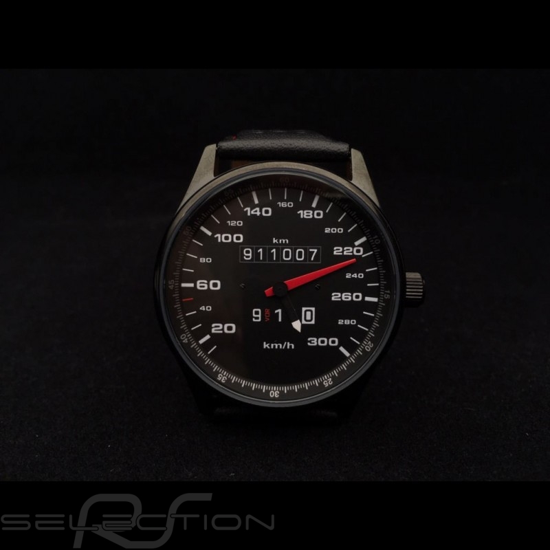 Inspired by the iconic speedometer of the Porsche 911 type 964 (1989–1994), this watch features the same iconic design with its black background, white numerals and scale up to 300 km/h, characteristic of models from this generation.