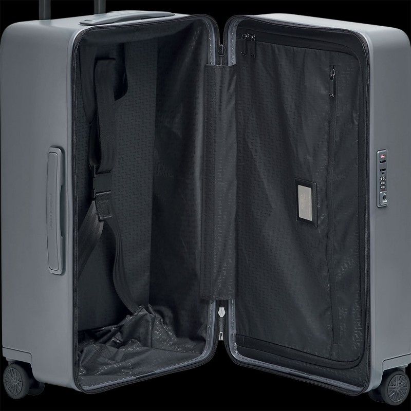The collection is made from lightweight polycarbonate, flexible and resistant, the development followed both technical and smart concept, integrating being indestructible as well as functional benefits like a usb connection. The style is enhanced by Porsche Design logo on the front and on the handles, the lining shows a Porsche Design icon print. Roadster Hardcase collection is available in five automotive inspired colors with a focus on a monochrome look with contrasting highlights in black color. A robust multi-stop trolley system with an ergonomic handle lifts the trolley to the highest performance level. A double coil ultra-secure zip and TSA-approved lock with combination protect your belongings from potential intrusion. With silent run ball bearing wheels for added traction and shock absorption. Top and side handles are made of genuine leather, comfortable and elegant, durable and ergonomic for easy carrying. The trolley is lined with tear-resistant textile and a wide panel divides the inside into two separate compartments that helps packing the bag. Both, functional pockets and compression system assure the highest versatility. The Roadster Hardcase collection features cabin trolley, cabin trolley with expansion and three bigger sizes. The wide opening of the business trolley’s front pocket makes it convenient and easy to use. The Trunks, available in two sizes, give supreme experience: its proportion and volume allow the best packing organization. The commitment to high performance put up to a next level with the Porsche Design Roadster Hardcase Series, manufactured and engineered by Bric’s.