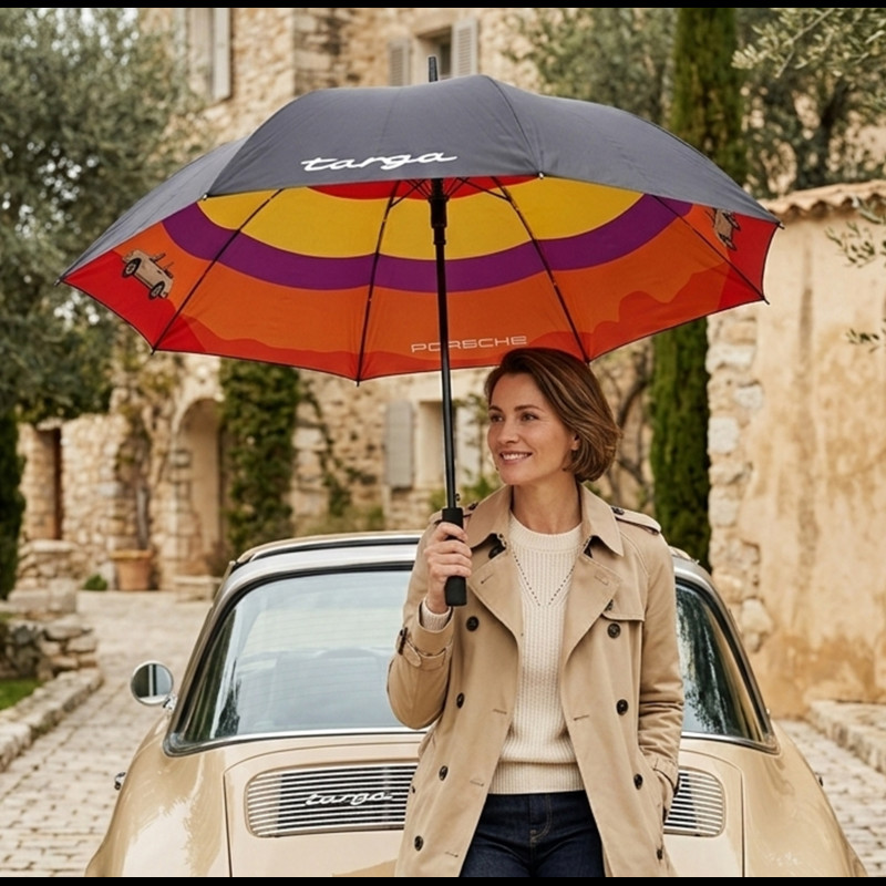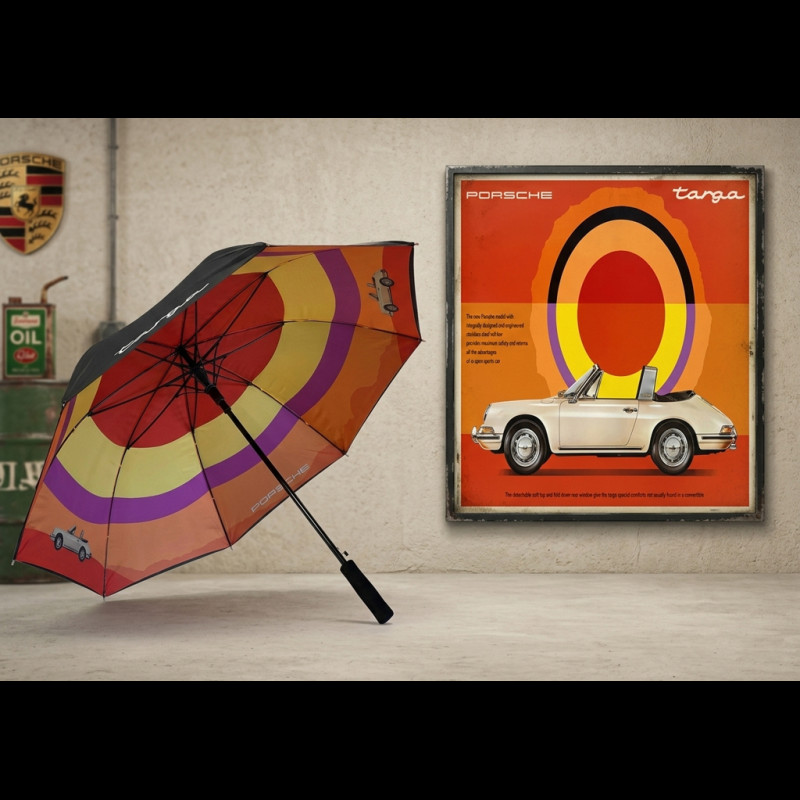 Brave the elements with the boldness of 1960s Pop Art. This umbrella pays homage to the revolutionary 911 Targa, capturing the spirit of freedom and the iconic safety of its steel roll bar through a vibrant and timeless design.
