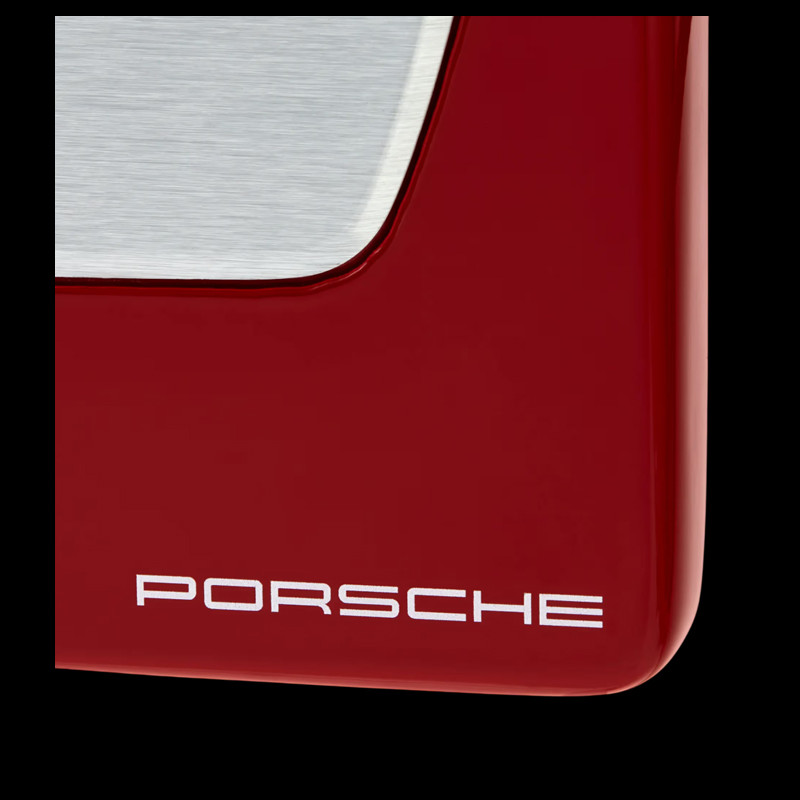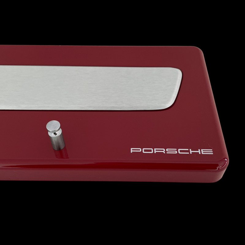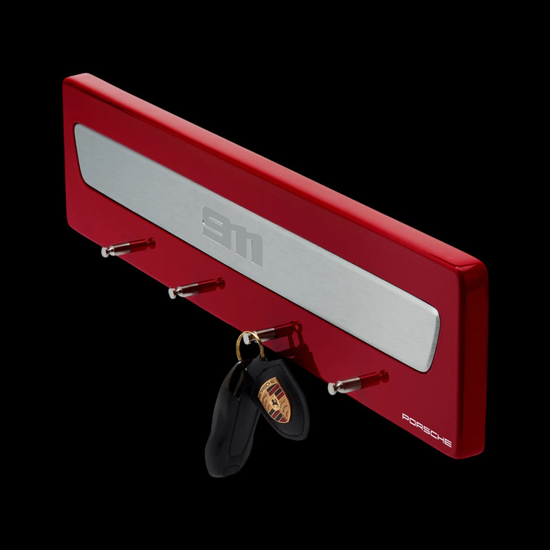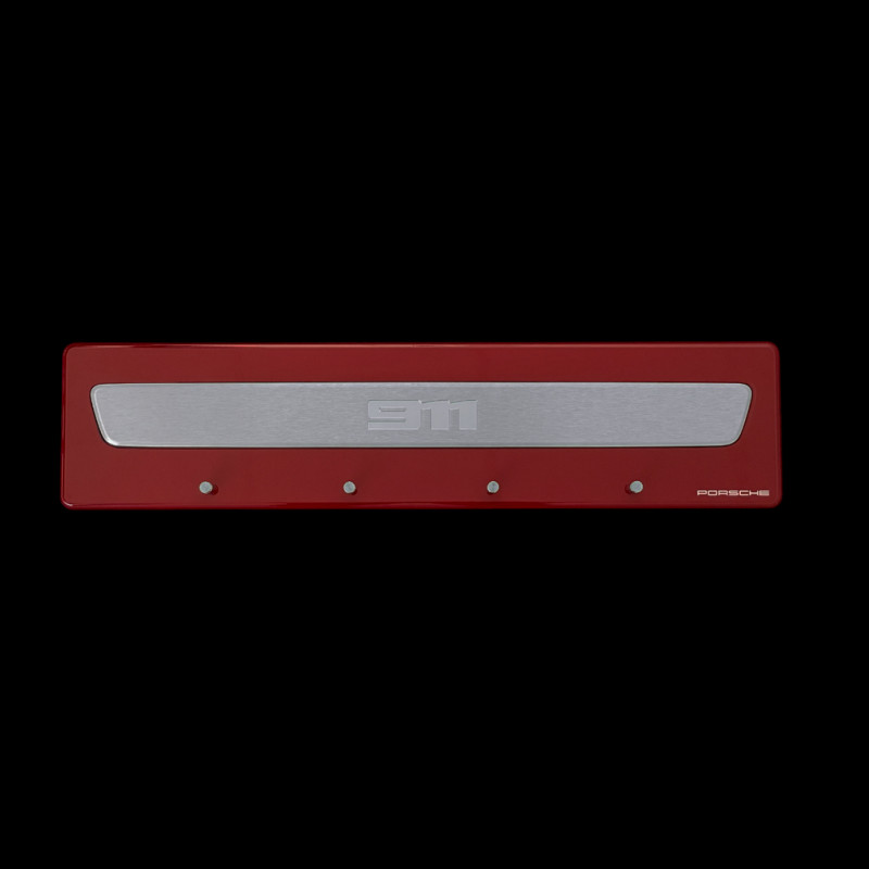 Finished in glossy carmin red and featuring an authentic Porsche 911 brushed steel door sill plate, it holds up to four car keys while adding a refined touch to your home or garage.
