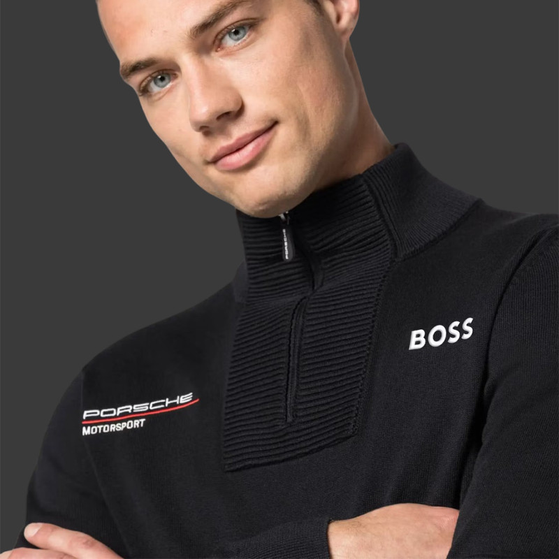 Porsche Pullover Motorsport BOSS Black Knitted quarter-zip sweater WAP121PMSR - men