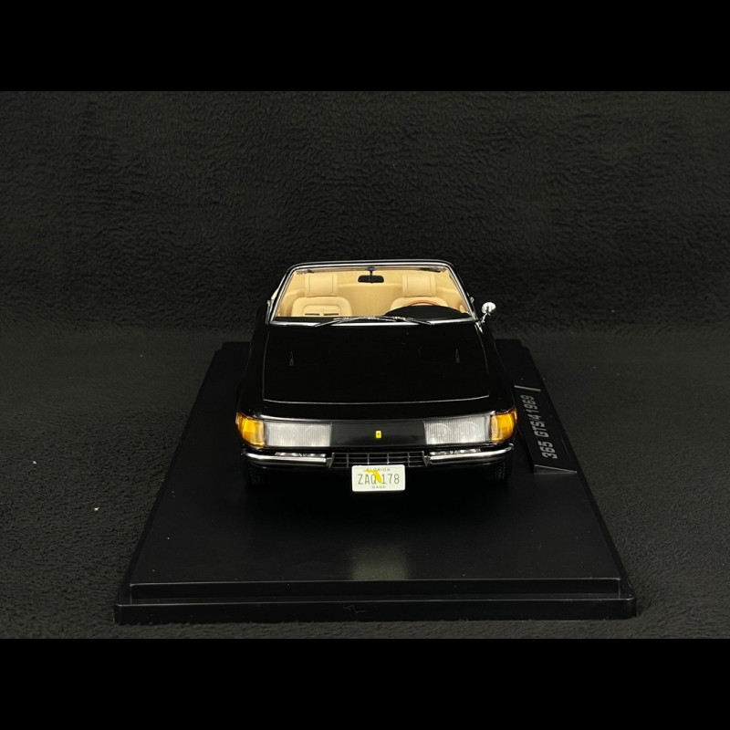 The 1/18 scale miniature of the 1969 Ferrari 365 GTB Daytona Spider Open, produced by KK Scale, faithfully reproduces one of the rarest and most elegant versions of the Daytona, featured in the film Miami Vice, the convertible Spider variant introduced in 1969 with a glossy black body. This model pays homage to the original – a Ferrari V12 grand tourer with a retractable roof, produced in very limited numbers and prized for its distinctive Pininfarina design and open silhouette.