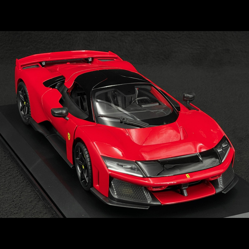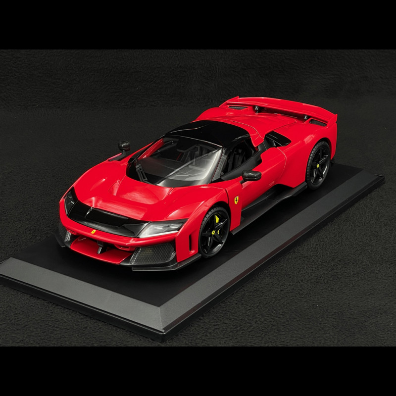 The Bburago 1/18 scale miniature Ferrari F80 stands out for its excellent level of detail, faithful to the real model. Thanks to its numerous opening parts (doors, bonnets), it allows a perfect view of the interior, engine compartment and finishes, making this reproduction an ideal piece for enthusiasts and collectors.