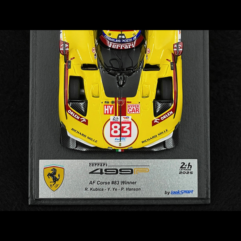 The No. 83 Ferrari 499P, entered by AF Corse, made history by winning the 2025 24 Hours of Le Mans, giving Ferrari its third consecutive victory in the legendary endurance race. Driven by Robert Kubica, Yifei Ye, and Phil Hanson, it triumphed after a thrilling race, a testament to technical excellence and human endurance.